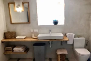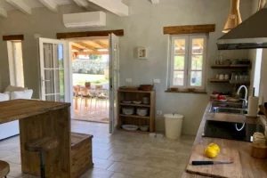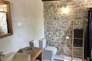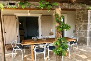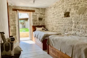 Villa BOFINA can accommodate up to 8 guests in 4 bedrooms, with 2 bathrooms. All of the bedrooms and bathrooms are part of the old stonehouse, whereas two bedrooms and one bathroom is one the ground floor and 2 bedrooms and one bathroom is on the first floor, making Villa BOFINA ideal for two families to share. The new extension of 35 m2 has an open-plan modern kitchen, high dining table and living room with a wood burner.