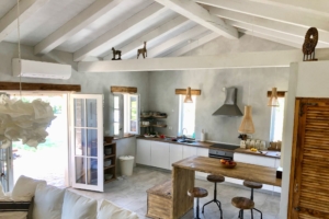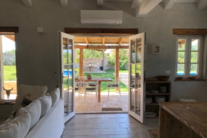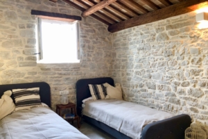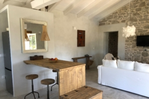 Villa BOFINA can accommodate up to 8 guests in 4 bedrooms, with 2 bathrooms. All of the bedrooms and bathrooms are part of the old stonehouse, whereas two bedrooms and one bathroom is one the ground floor and 2 bedrooms and one bathroom is on the first floor, making Villa BOFINA ideal for two families to share. The new extension of 35 m2 has an open-plan modern kitchen, high dining table and living room with a wood burner.